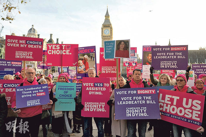 【明報專訊】英國「協助死亡」法案周五(29日)獲下議院二讀通過。提出法案的工黨議員利德比特(Kim Leadbeater)在辯論開首發言稱,法案可賦予臨終病人選擇權、自主和尊嚴。不過,法案引起不少爭議,辯論期間國會大樓外有支持及反對法案的民眾集會。