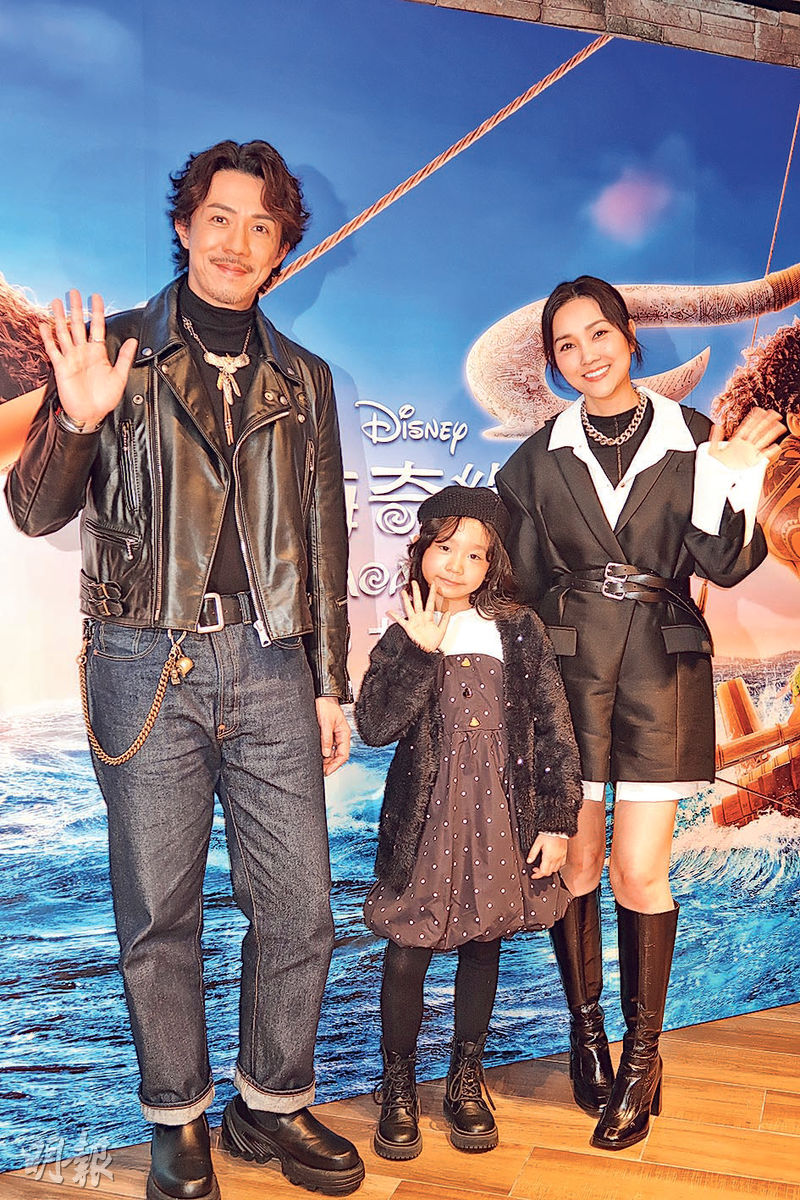 【明報專訊】張繼聰與7歲女兒張靖(Kakaball)首次父女檔為迪士尼動畫電影《魔海奇緣2》配音,分別聲演「茂宜」及「茜美雅」。片中主角「慕安娜」,由女團Lolly Talk成員吳倩怡(Sinnie)配音。《魔海奇緣2》前晚舉行首映禮,張繼聰偕太太謝安琪與Kakaball一家三口襯到絕出場,Kakaball受訪時表現淡定,成全場焦點。