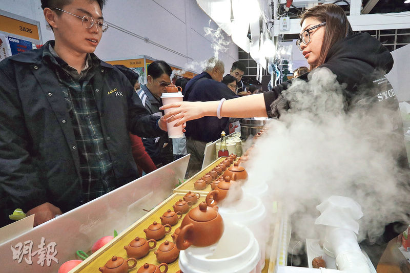 【明報專訊】冬日美食節昨起一連5日在灣仔會展開鑼,有市民稱經濟環境轉差,「手頭緊」相應少買貴價貨;現場亦見有人格價,「平過出面才買」。多間海味參展商戶指今年人流較往年少,歸因於不少港人趁聖誕長假外遊,亦留意到顧客近年轉趨選購中低價乾貨,故採取薄利多銷策略促銷。另有不少參展商「出盡法寶」,包括推出噴氣茶壺造型的茶飲、10元千層蛋糕優惠招徠。