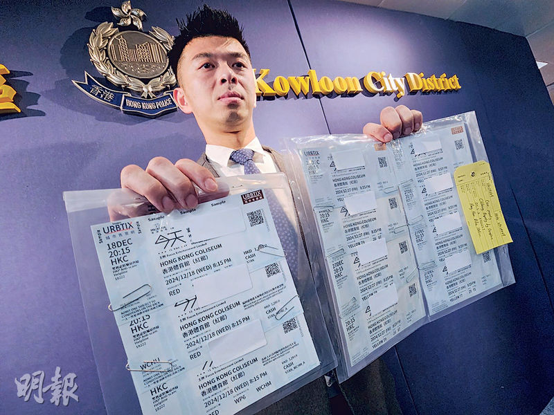 九龍城警區重案組第二隊督察戴廣輝表示,警方自上月17日起,接獲20多宗買到假演唱會門票報案,事主透過非官方網上平台購票,進場時被工作人員告知門票失效,他們始知所購的為假票,蒙受損失。