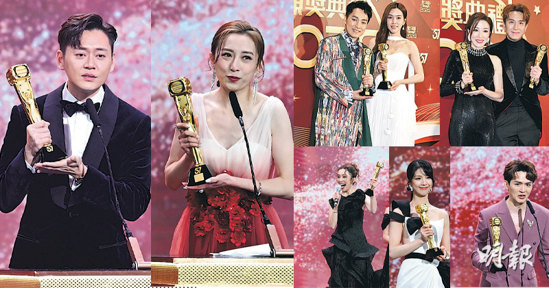 【明報專訊】無綫《萬千星輝頒獎典禮2024》昨晚於澳門舉行,張振朗與龔嘉欣分別憑劇集《反黑英雄》及《企業強人》首度登上無綫視帝、視后寶座,張振朗兼得「馬來西亞最喜愛TVB男主角」,成為雙料視帝,兩人領獎時激動爆喊。《反黑英雄》還贏得「最佳劇集」、「最佳男、女配角」林景程與傅嘉莉共5獎,是全晚大贏家。賽前視后大熱《黑色月光》楊茜堯僅得「大灣區最喜愛TVB女主角」,張曦雯憑《企業強人》封「馬來西亞最喜愛TVB女主角」。至於話題劇《婚後事》則食白果無獎。
