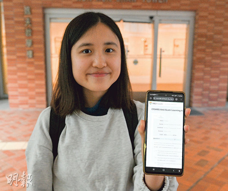 文學院高年級生羅同學昨花約8分鐘完成測驗,只答錯警方「防騙視伏器」一題,稱做問卷前未聞相關工具,又說整體題目簡單,以常識作答即可。她認為測驗對提升防騙意識有限,「好似考完試後,不記得所有東西」。