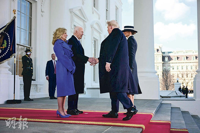 【明報專訊】美國總統當選人特朗普的就職典禮周一(20日)舉行,按事前規劃,特朗普一早將前往白宮與總統拜登會合,兩人再同車前往舉行宣誓儀式的國會山莊圓形大廳。拜登離開橢圓形辦公室前,將依傳統留一封卸任信給特朗普,傳達祝福與建言。