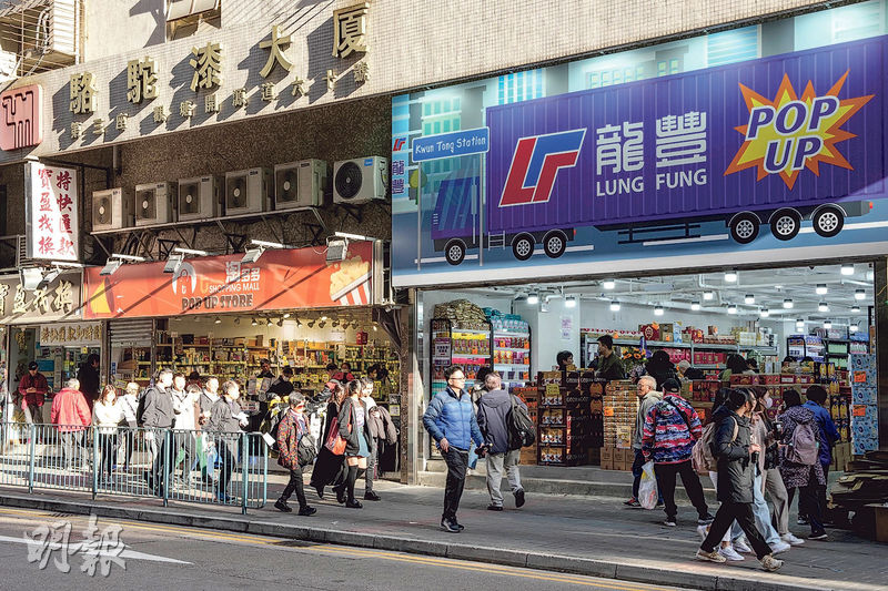 連鎖藥房龍豐藥房老闆謝少海或相關人士,去年11月以7360萬元購入、原由已故「舖王」鄧成波的家族成員持有的觀塘駱駝漆大廈第3座地下2、3號舖,當中原由花旗銀行租用的3號舖,近日由龍豐用作集團全港首間Pop-Up Store,舖位面積約1936方呎,就現場所見,舖位近乎未有裝修,店內只設金屬貨架及紙箱,加上主要出售零食及新年禮盒等,相信是趕於春節前開業。