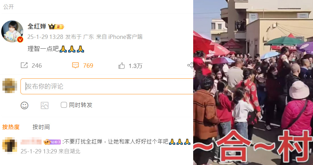即時熱點 全紅嬋回老家過年吸引大批人 發文籲「理智一點」 (15:50) 發佈於 8 個月 前 2025 年 1 月 29 日 By 明報 國家隊17歲「跳水女王」全紅嬋近日回湛江邁合村老家過年,吸引大批人前往一看全紅嬋風采。面對此情況,全紅嬋今午(29日)在微博呼籲「理智一點吧」。 據村幹部稱,在全紅嬋回家前,村內已組織工作人員在她家前方增設安全圍欄,「可能會有較多遊客去門口拍照,為避免擁堵,我們增加了安全圍欄的寬度」。此外,全紅嬋的住所附近也增設了無人機反制設備。(鳳凰新聞/橙柿互動)圖輯:全紅嬋「中國最年輕奧運三金王」巴黎笑與淚 相關文章:全紅嬋全紅嬋「中國最年輕奧運三金王」巴黎笑與淚編輯推介跳水女王 Up Next 年初二車公誕|短片:內地遊客感受過年氣氛 沙田居民盼香港順境 (14:04) 不要錯過 DeepSeek|95後關鍵開發者「天才少女」羅福莉爆紅 羅福莉是誰? (20:14) 繼續閱讀 贊助商 猜你喜歡 孫穎莎、王曼昱明年當清華研究生 (13:41) 內地運動員學業現況 孫穎莎、王曼昱明年當清華研究生 全紅嬋入暨南大學 王楚欽讀北大碩士 (13:41) 新加坡游泳世錦賽中國隊名單公布 全紅嬋缺席 (20:37) 全紅嬋陳芋汐跳水世界盃女子雙人10米台奪冠 同步展現水花消失術【附視頻連結+多圖】 (17:14) 全紅嬋獲「獎勵」地皮建獨立屋 (02:27) 跳水|世界盃瓜達拉哈拉站煞科 國家隊男子項目連失兩金 全紅嬋10米台負陳芋汐摘銀 (19:35)
