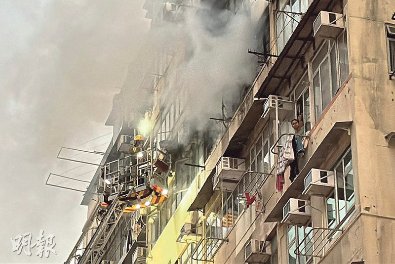 【明報專訊】深水埗元州街一唐樓單位昨清晨疑因拜神留下火種引起火警,大量濃煙冒出,有住客被困屋內無法逃生。消防接報到場開喉撲救,升起雲梯救出其中兩名住客,火警約半小時撲熄,共5住客吸入濃煙不適需送院,約30人疏散到安全地方。據了解,起火6樓單位已空置7年,相信有人在屋內燒衣引致火警,案件無可疑。