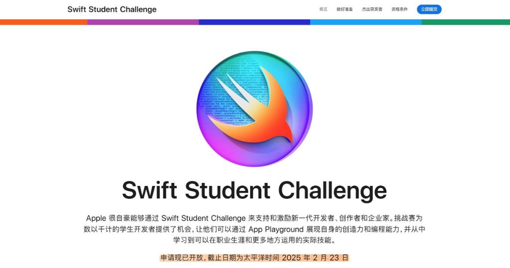 蘋果2025年的Swift Student Challenge現已開放申請,至2月23日截止。據蘋果介紹,此挑戰賽為尚未是全職開發者的人提供機會展現自身的創造力和編程能力,並從中學習到可以在職業生涯和更多地方運用的實際技能。【有關挑戰賽詳情的網頁】