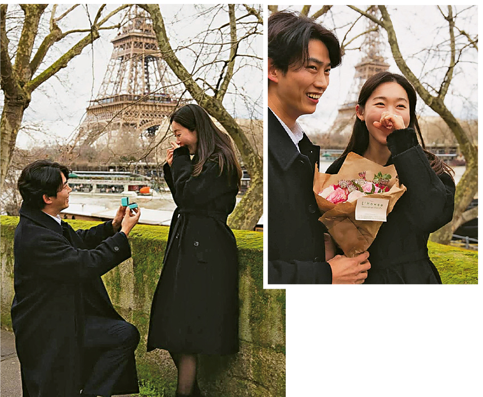 【明報專訊】韓國男團2PM成員兼《為你心動》36歲男星澤演自2020年被揭有圈外女友後,火速認愛並獲得粉絲祝福,日前有內地網民透過社交媒體帳戶The Best Photo Paris發現,去年4月澤演在巴黎鐵塔下,單膝下跪向女友求婚的多款照片,他向女方送上戒指和鮮花,逗得她喜極而泣,從未公開露面的容貌亦因此曝光。