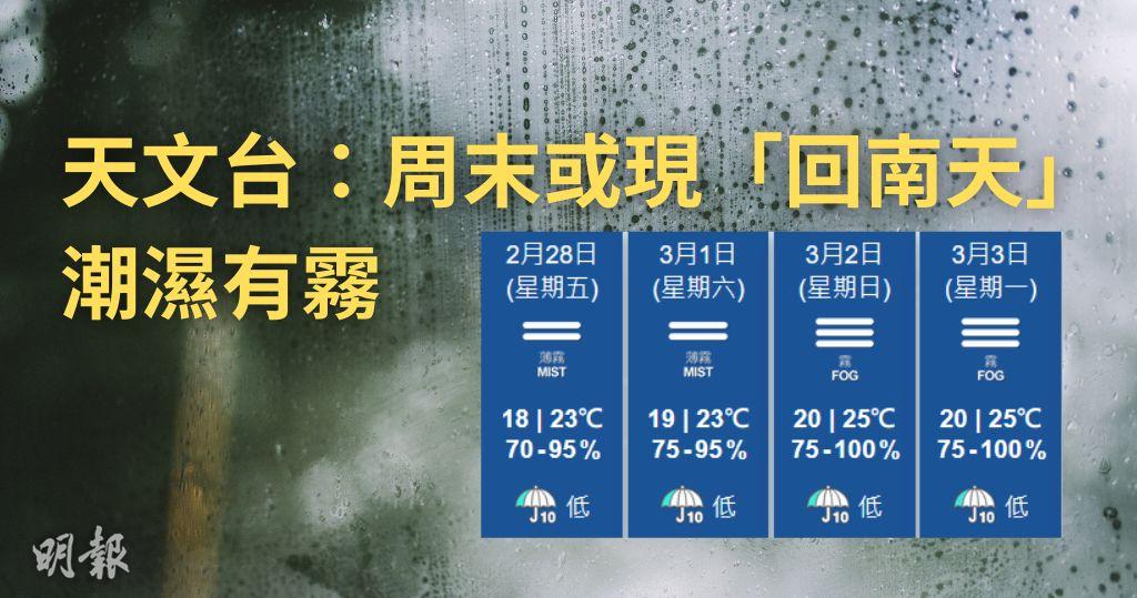 天氣|天文台:周末或現「回南天」 潮濕有霧 (13:05)
