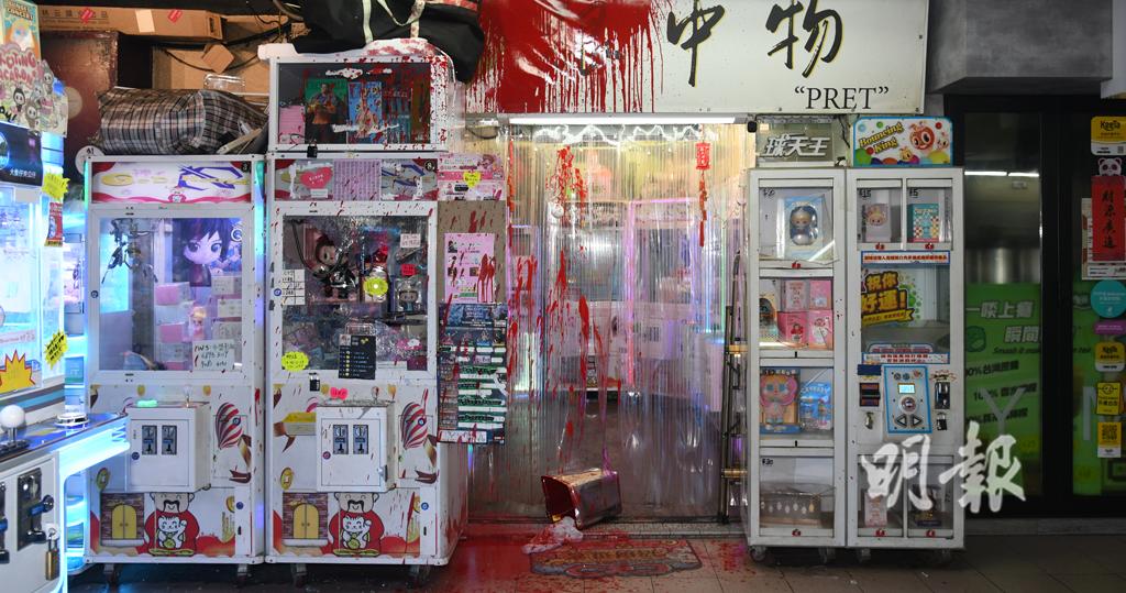 事後一名接報到場「台主」表示,店主目前身在內地,今次被刑毁的店舖是店主第一門市,開業約4年,而日前(28日)被毀的店舖則屬分店,店內閉路電視拍攝到案發時有2男1女到場,女歹徒負責把風,男同黨則下手破壞夾公仔機和淋潑紅油,得手後向西灣河文娛中心逃逸。