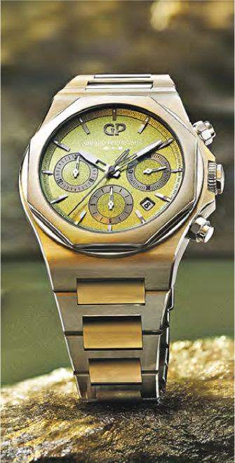 【明報專訊】Girard-Perregaux跟英國豪華汽車製造商Aston Martin時有合作,但最近推出的Laureato Chronograph Aston Martin Edition限量款計時表仍然較人驚喜,因為表盤製造過程涉及全新工藝——以汽車漆打造,呈現出彩虹般的炫目光彩!表盤製作過程涉及14個步驟,需要塗上15層超薄油漆並經過兩次烘烤,才能達到耀目色彩與理想效果。相比汽車業,表盤的尺寸細小,用到的油漆需要更長時間過濾處理,以消除殘留顆粒,確保上色效果細緻。當佩戴者從不同角度觀看時,表盤與光線巧妙互動,呈現綠色漸變至橙色的奇妙色調,跟其他表盤截然不同。●