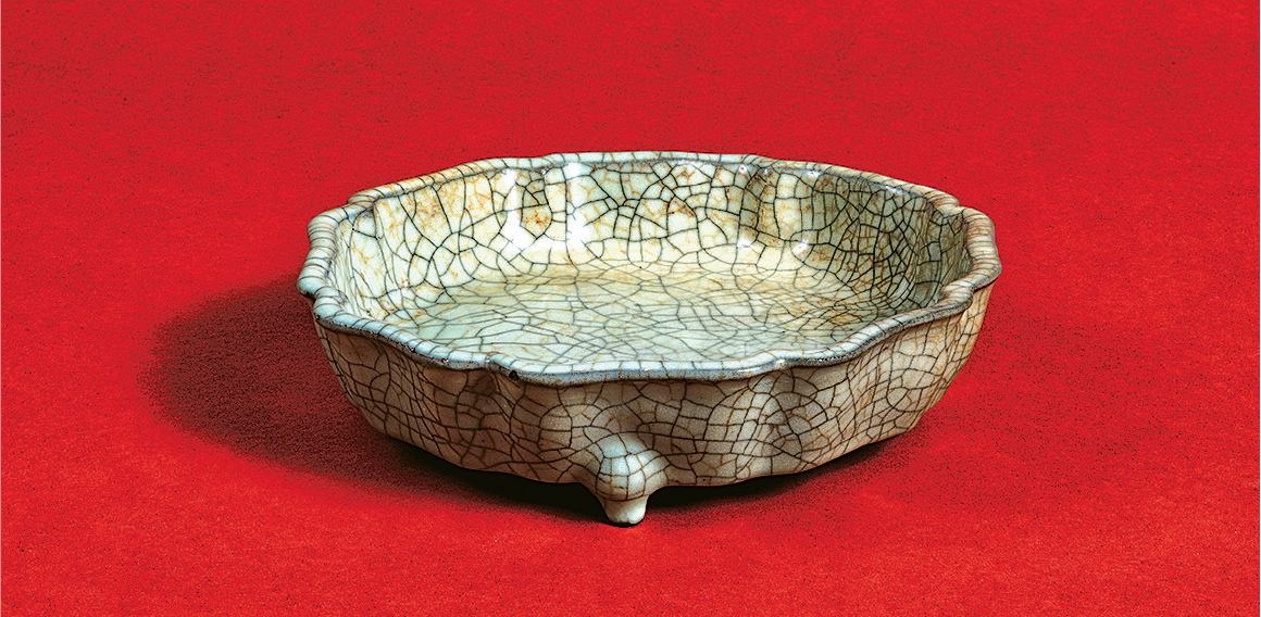 【明報專訊】哥窰作為宋代「五大名窰」之一,其出品是不少藏家夢寐以求之物,著名意大利時裝模特兒和珠寶設計師Elsa Peretti(1940年至2021年)生前也鍾愛此類藏品,收藏了一件珍稀筆洗——宋或元代的哥窰灰青釉葵花式三足洗。