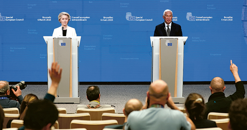 歐盟委員會主席馮德萊恩周二首次公開提出「重新武裝歐洲」計劃,擬調動8000億歐元(6.75萬億港元)打造「一個安全而有韌性的歐洲」,而科斯塔周四亦公開表示,更強大的歐洲防衛體系,將為烏克蘭提供威懾力,指出「烏克蘭安全正處於歐洲安全的核心」。