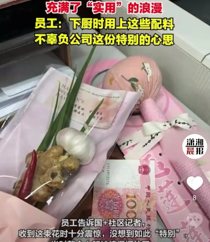即時兩岸 國際婦女節 | 公司送女員工薑蔥蒜花束 放工回家即可煮餸 (22:31) 發佈於 8 個月 前 2025 年 3 月 8 日 By 明報 湖南省《瀟湘晨報》報道,3月8日國際勞動婦女節當天,有公司給女員工們送上了極具特色的「薑蔥蒜花束」,一改傳統鮮花禮品的套路,在網絡引發廣泛關注。 該公司員工透露,由於公司內已婚女性佔比較大,管理層考慮到大家平日忙碌於家庭與工作之間,日常下廚在所難免,於是「精心策劃」了這份特別的禮物。 當女同事們收到這束由新鮮薑蔥蒜捆綁而成,還裝飾有精美絲帶的「花束」後,既能帶來歡樂,還可以帶回家做菜。不過也有網民表示,女性節日還是不能脫離「煮飯婆」的固化看法。(綜合報道) 相關文章:國際婦女節婦女節煮餸編輯推介花束薑蔥蒜花束 Up Next 兩會 | 今天日程:民生主題記者會 政協第三次全體會議 台灣團開放採訪 (00:05) 不要錯過 兩會 | 新疆官員:民眾可以自由選擇工作 (17:32) 繼續閱讀 贊助商 猜你喜歡 李家超婦女節酒會致辭稱讚女性公務員 局長近半女性歷屆政府比例最高 (12:28) 女強人陳翊庭為性別平等敲鐘 迎婦女節 三八國際婦女節招待會北京舉行 諶貽琴:年內辦全球婦女峰會 (23:53) 三八婦女節 深圳6大景點推女士優惠|著數情報 (18:00) 黃山丹霞山等知名景區三八婦女節對女遊客免票 (20:45) 加沙一隅.短片:加沙戰火下度婦女節 巴人婦女嘆沒餘力慶祝 (13:19)