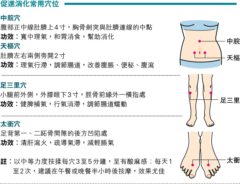暢行氣機:按穴摩腹 刺激胃腸蠕動助消化