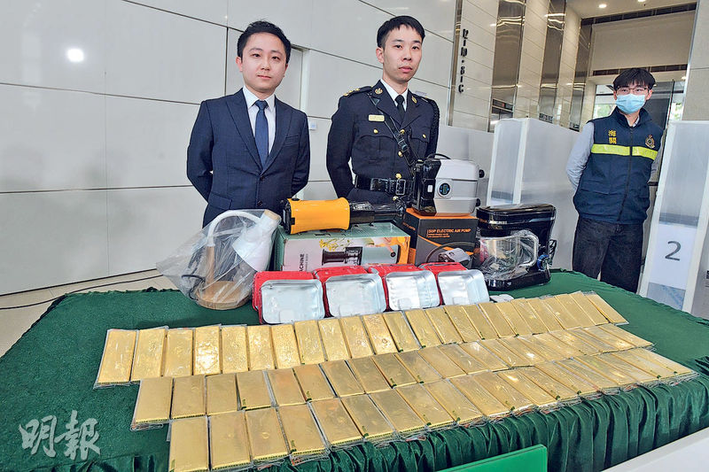 【明報專訊】海關偵破有紀錄以來最大宗走私金條案,行動中海關檢獲64條每條重1公斤的金條,市值4600萬元,若成功走私可逃避約460萬港元的日本關稅。涉案金條收藏集運貨物內,由一間廣東集運公司經本港空運到日本一間集運公司,暫未知金條來自內地或本港,海關正調查事件,暫時未有人被捕。