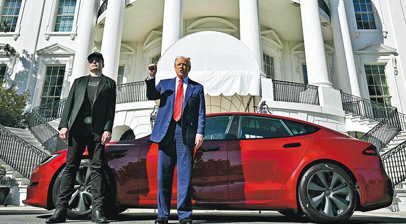 【明報專訊】美國總統特朗普周二(11日)下午在白宮南草坪安排一場電動車公司Tesla的車展,一邊談及加拿大關稅等議題,一邊試車助馬斯克推銷,領導政府效率部(DOGE)的Tesla行政總裁馬斯克亦有出席。美聯社報道,特朗普當場選中一輛紅的Model S(圖),稱會付支票買下,日後放在白宮讓職員使用;這款車在美國售價大約8萬美元(約62.4萬港元)。這場白宮車展適值Tesla股價近日大跌,因馬斯克日益加強的政治形象及尋求削減政府開支引起不滿,有陳列室受破壞,Tesla在歐洲的銷售亦下跌。特朗普指摘激進左翼瘋子「非法」抵制Tesla,並表示會將針對Tesla陳列室的暴力行為定性為國內恐怖主義。
