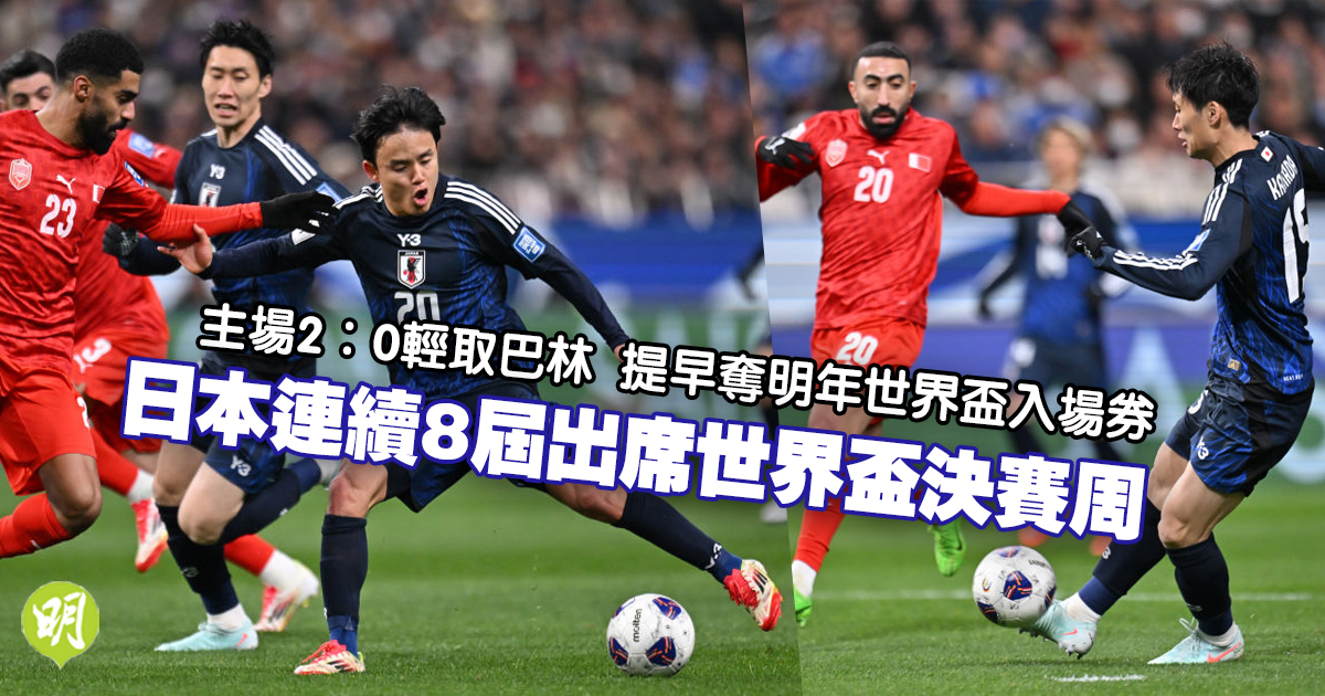 世界盃外圍賽|日本主場2:0輕取巴林 篤定連續8屆出席世界盃決賽周 (20:30)