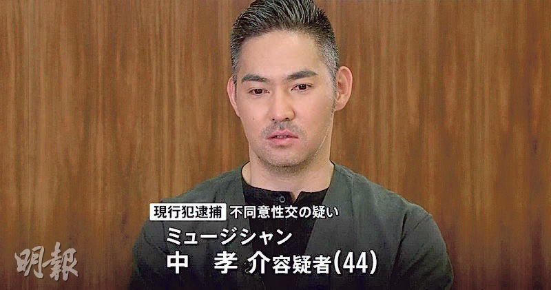 【明報專訊】曾演台灣片《海角七號》的44歲日本男歌手中孝介,昨凌晨2時在東京品川一間公共澡堂涉嫌性侵20餘歲男顧客,當場被警方拘捕,以「不同意性交」罪名接受調查,日媒引述警方消息稱,中孝介否認指控並表示:「我完全不記得有這回事。」中孝介被捕後,所屬事務所發表聲明:「首先向受影響人士致歉,並對粉絲和相關機構帶來不便表示歉意。」並以未能聯絡到中孝介為由,拒絕透露更多詳情,「一旦確認事實,便會立即通知大家,敬請諒解」。據報案發時澡堂只有兩名顧客,中孝介趁受害人在椅子上熟睡時出手,對方驚醒並通知工作人員報案。