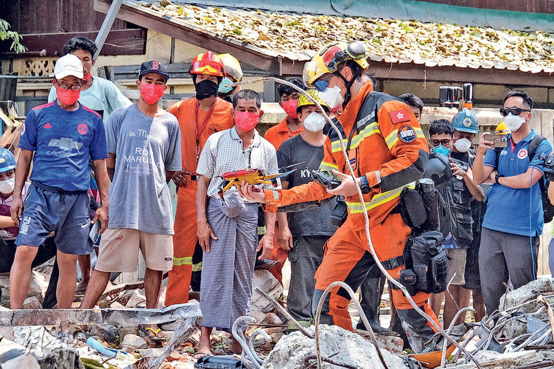 保安局昨於社交網站上載相片和影片,稱特區救援隊前天抵達首都內比都後,在緬甸國家疾控中心短暫休整,並與中國駐緬甸大使館外交官見面。救援隊其後按緬甸當局指示,再連夜動身轉往重災區曼德勒。救援隊最終於昨午約12時抵達曼德勒,沿途見到不少房屋倒塌,災民在空地搭建臨時帳篷。