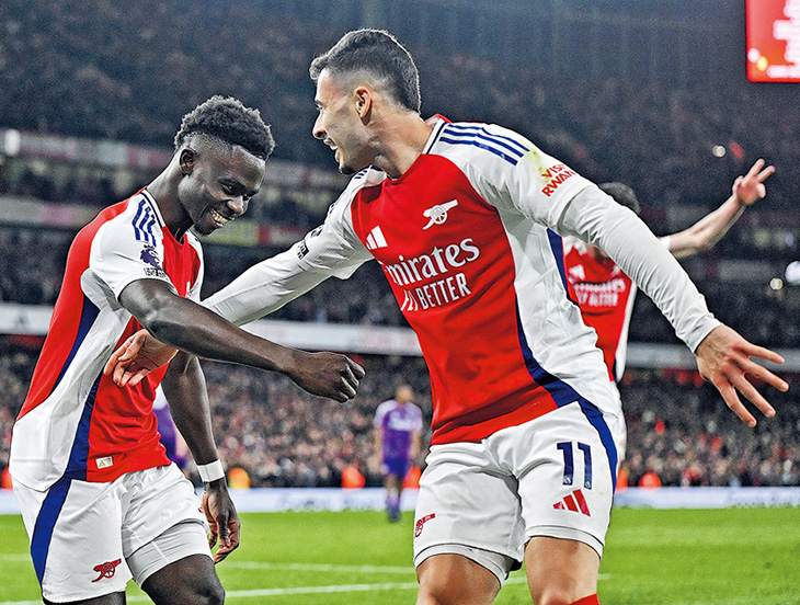 【明報專訊】養傷逾3個月的翼鋒布加約沙卡昨在英超復出建功,助阿仙奴在倫敦打吡主場2:1挫富咸,賽後以30戰得61分續守在次席,惟「兵工廠」守將加比爾馬加希斯及祖利安添巴此役同告傷出,令後防傷兵問題雪上加霜。