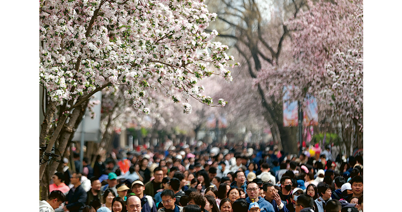 【明報專訊】內地三天清明「小長假」昨日(4日)啟動,除了探親祭祖,正值最美「人間四月天」,短途春日踏青賞花遊亦火熱,武漢櫻花、洛陽牡丹、林芝桃花成為搜索熱詞,相關目的地出遊近日訂單大增。「央視網」引交通運輸部預測,清明假期全社會跨區域人員流動量將達7.6億人次。