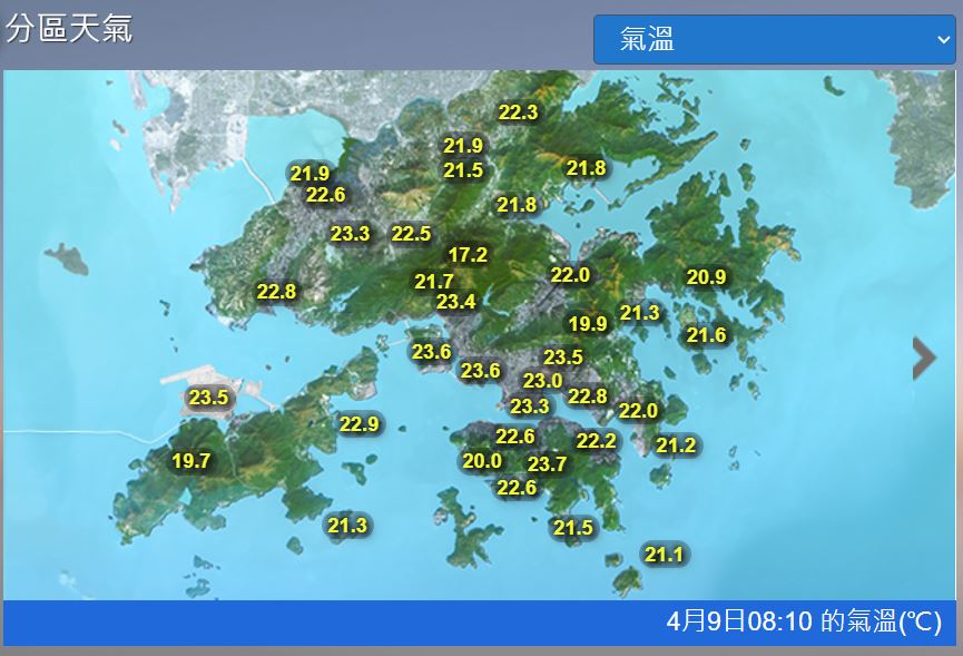 即時熱點 天氣|天文台:日間溫暖最高27°C 周六有驟雨狂風雷暴 (08:39) 發佈於 6 個月 前 2025 年 4 月 9 日 By 明報 上午8時,天文台錄得氣溫23.3°C,相對濕度82%。廣東沿岸風勢微弱。同時,一道雲帶覆蓋該區。本港地區今日(9日)天氣預測短暫時間有陽光,日間相當溫暖,最高氣溫約27°C,晚上有薄霧,吹微風。 展望未來一兩日潮濕及有薄霧,日間相當溫暖。周五(11日)部分時間有陽光,周六(12日)初時有霧,日間有驟雨及狂風雷暴,稍後北風增強。隨後一兩日氣溫下降,天色好轉,日間乾燥。(天文台) 相關文章:天文台天氣天氣速遞編輯推介 Up Next 關稅戰|短片:上海股民損手仍對國家有信心 越南工人憂關稅戰致失業 (16:21) 不要錯過 英國首宗移植子宮案例成功誕女嬰 36歲新手媽媽:最好的禮物 (14:45) 繼續閱讀 贊助商 猜你喜歡 天氣|酷熱警告生效 天文台:周末有一兩陣驟雨 (08:22) 天氣|天文台:周四天晴局部地區有驟雨 最高32°C (20:56) 今年10月已有4日達33℃以上 破1884年以來紀錄 (17:45) 天氣|天文台:天晴酷熱最高33°C 局部地區有驟雨 (08:14) 天氣|天文台:周三天晴酷熱 最高33°C (21:00) 水利部和中國氣象局發布山洪預警 (22:56)