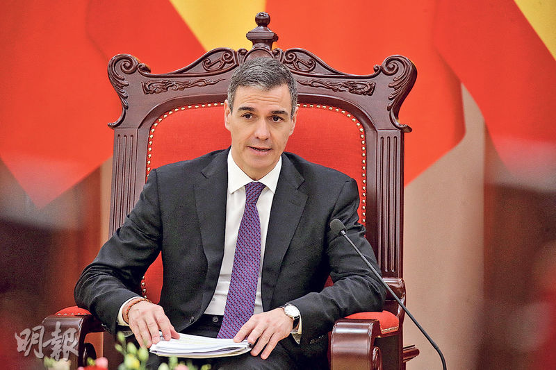 【明報專訊】在美國發起關稅戰的背景下,中共中央政治局常委、國務院總理李強昨下午主持召開經濟形勢專家和企業家座談會,聽取對當前經濟形勢和下一步經濟工作的意見建議。另邊廂,將於周五訪華的西班牙首相桑切斯(圖)呼籲,在美國對全球全面加徵關稅引發動盪之際,歐盟應重新審視與中國的關係。