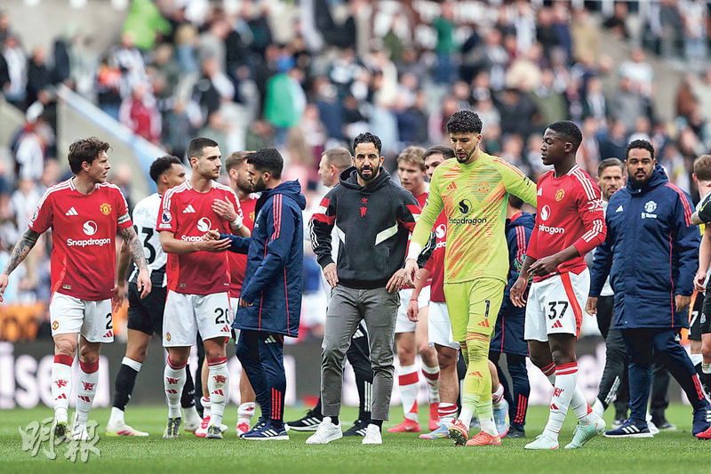 【明報專訊】曼聯在英超又輸一場。他們昨作客紐卡素改以二號門將比恩迪亞把關,但防線錯漏百出下,終以1:4大敗在紐卡素腳下,今季兩循環慘遭雙殺,更糟糕的是「紅魔」此役後,篤定創下隊史征戰這聯賽的最低分羞家紀錄。