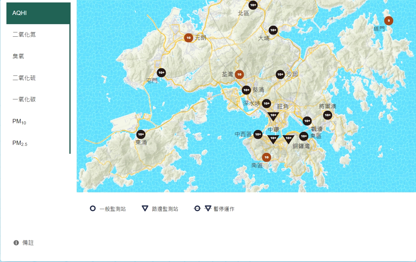 受東北季候風相關的沙塵氣流影響,本港空氣質素轉差。截至傍晚6時,除了元朗、荃灣、南區及塔門的空氣監測站,環保署在其他地區的11個一般監測站及3個路邊監測站,錄得的空氣質素健康指數,全部達到「10+」的「嚴重」水平,健康風險級別屬最高;當中以屯門監測站錄得可吸入懸浮粒子濃度最高,達每立方米315.8立方米,其他空氣污染物如二氧化氮及臭氧濃度亦上升至偏高水平。