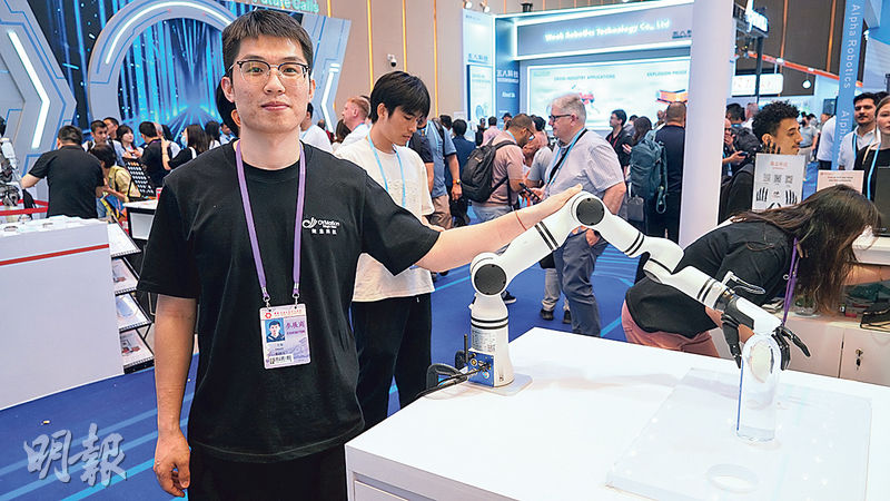 面積4200平方米的服務機械人展區頗有「未來感」,參展的包括杭州宇樹、廣州里工等知名企業。專做仿真機械手(業內稱為「靈巧手」)的上海傲意科技技術工程師韓曉東稱,很高興能在廣交會與一眾國內同行齊齊亮相,「當中國機器人產業的知名度打開,整體蓬勃發展起來,我們做上游的企業也會有更多訂單。」韓曉東介紹,該公司的仿真機械手可用於遠程操控,例如在無菌實驗實中做實驗,或者在危險、有毒的工作環境下作業。他說,現時仍是以國內銷售為主,歐洲同類產品價格是中國10倍,所以就算加徵關稅亦影響不大。