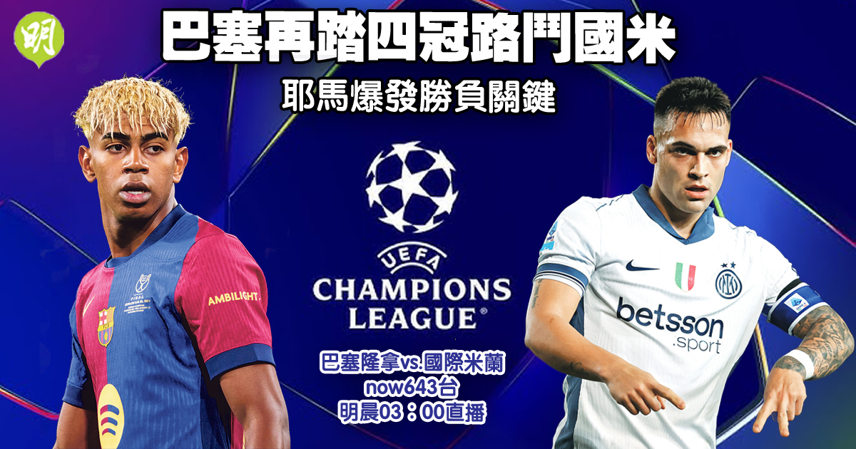 西甲榜首巴塞隆拿明晨(5月1日)將於歐聯4強首回合迎戰意甲勁旅國際米蘭,被視為未來球王的17歲翼鋒拉明耶馬今季表現進一步提升,日前亦於西班牙盃決賽交出兩次助攻領銜險勝皇家馬德里封王,球隊能否相隔10年再闖決賽,這名西班牙超新星勢左右大局。