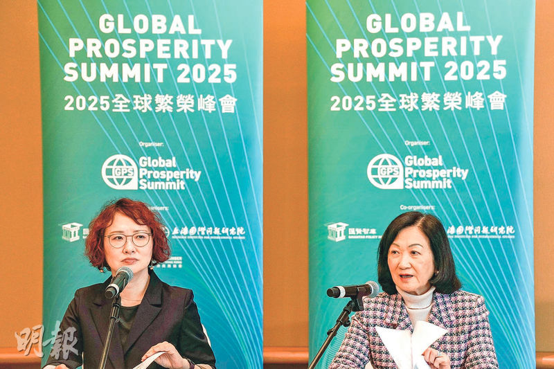 【明報專訊】中美關係不穩下,連續第二年籌辦國際峰會的行政會議召集人葉劉淑儀昨稱,民間外交工作需要長期做,舉例內地智庫也長期與美方交流及學者互訪,香港應扮演國際交流合作角色,她創辦的匯賢智庫將「長期主辦」全球繁榮峰會。她表示,去年峰會較多美國講者,今年歐洲商務協會加入協辦,她認同中美博弈下歐洲角色重要,今年也多了歐洲、包括英國的講者。