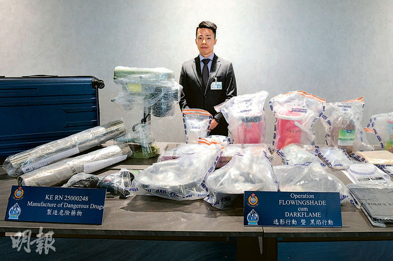 【明報專訊】警方前日搜查錦田及落馬洲兩間村屋,檢獲液態冰毒半製成品、原材料及製毒工具,毒品市值約330萬元,拘捕一名墨西哥籍「製毒師」。