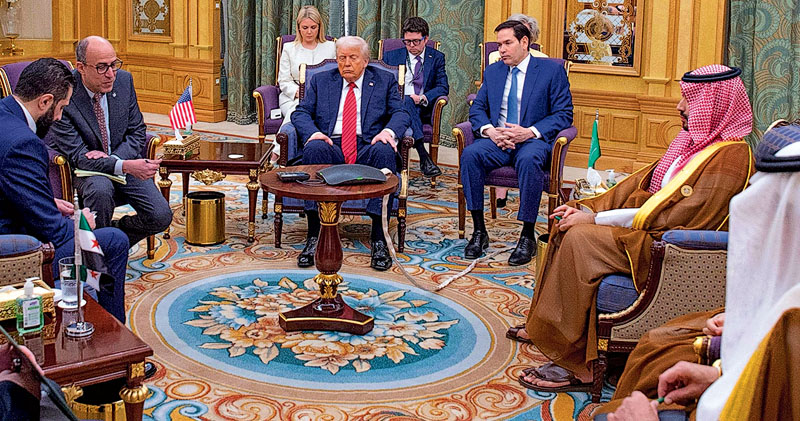【明報專訊】正出訪中東3國的美國總統特朗普國事訪問沙特阿拉伯期間,在周二(13日)出人意表地宣布將解除對敘利亞的所有制裁,並與推翻巴沙爾政權後的敘利亞領導人會晤。他表示敘利亞、伊朗、黎巴嫩皆有擁抱光明未來之機,聲言中東將「由商業而非混亂來定義」。他一反過往美國總統的立場,表明反對干預主義。《華盛頓郵報》稱此為美國的中東外交政策重大轉向,展現了特朗普以實用主義為中心的願景;英國《旁觀者》(The Spectator)雜誌指特朗普對阿拉伯世界的取態是「利益取代了意識形態」。