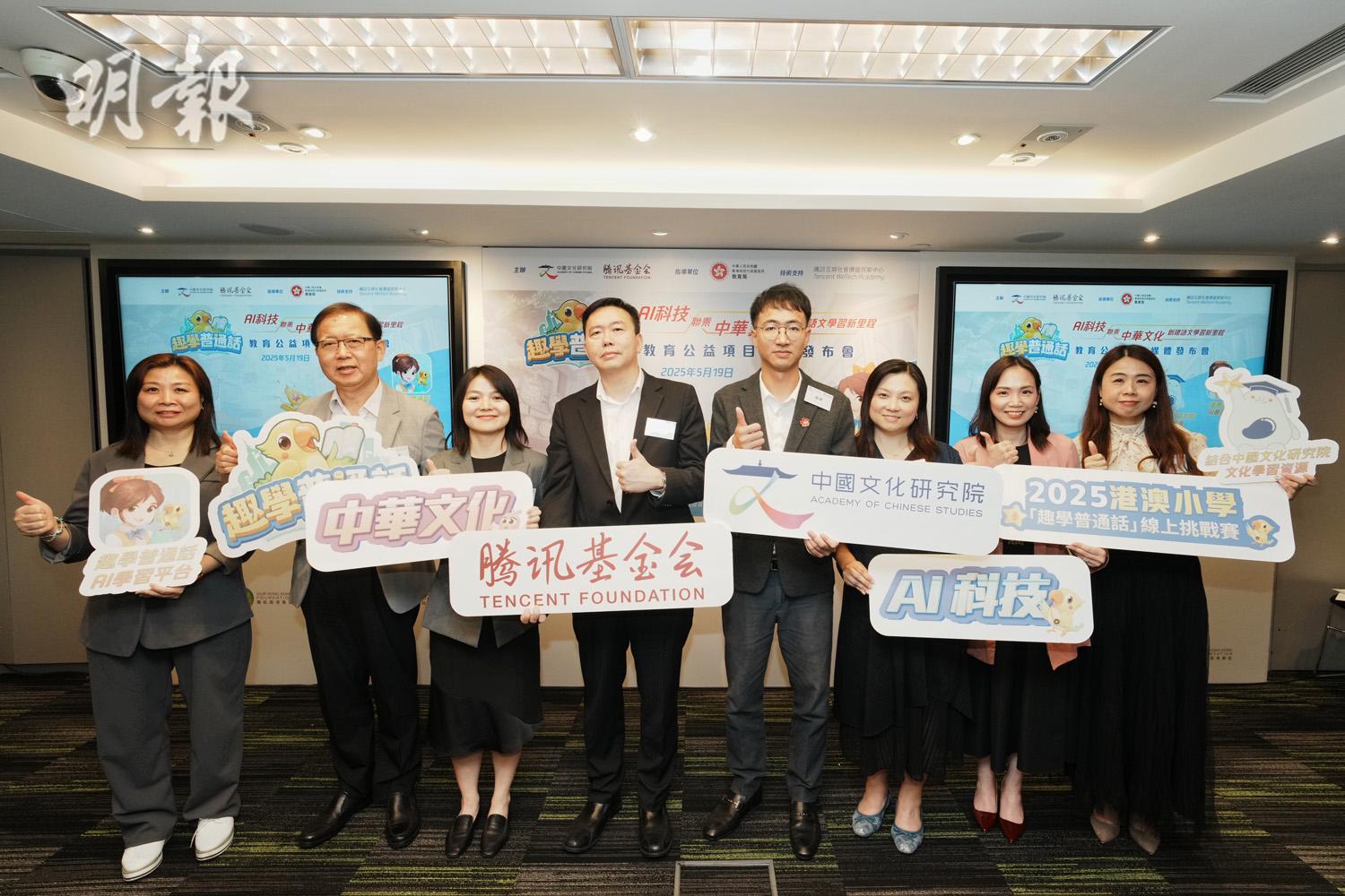 由中國文化研究院與騰訊基金會合作推展的小學生普通話教育遊戲應用程式「趣學普通話」正式推出,最新應用程式版本運用人工智能(AI)作語句語音分析,並包括中華文化知識。基金會下月舉行港澳小學普通話線上挑戰賽,贏家將可到大灣區交流。中國文化研究院院長邱逸指,將視乎學生反應決定是否擴大規模至中學,未來盼為全港市民提供普通話教育。