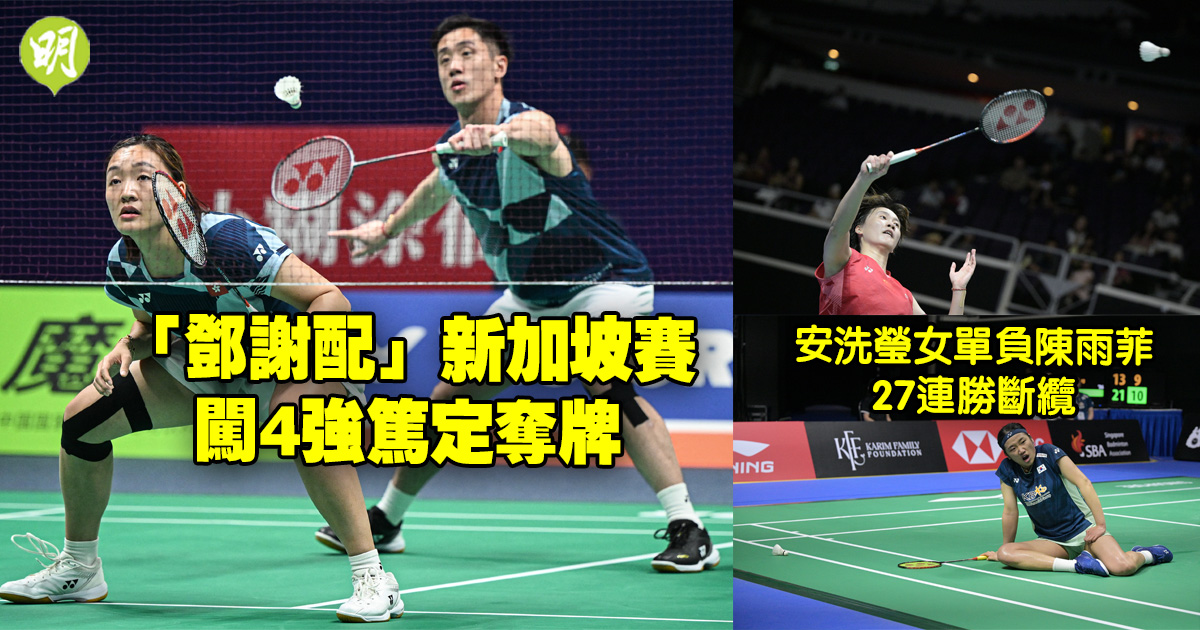 羽毛球|「鄧謝配」新加坡賽闖4強篤定奪牌 李卓耀男單8強止步 安洗瑩女單負陳雨菲27連勝斷纜 (21:08)