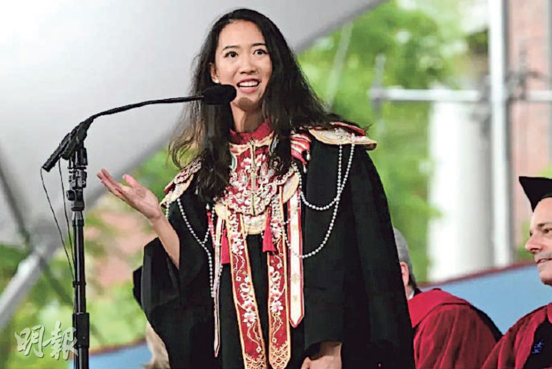 【明報專訊】在美國哈佛大學畢業典禮致辭的中國女畢業生蔣雨融(Luanna Jiang Yurong)被中國網民質疑靠父蔭,事件掀起波瀾,曾為蔣雨融寫推薦信的中國綠發會昨聲明,稱推薦信與公益捐贈沒關係;蔣雨融本人經營的社交媒體帳號前日深夜回應事件,稱未依靠中國綠發會推薦入讀哈佛;《環球時報》前總編胡錫進認為,公眾反感源於不滿社會資源分配不公。