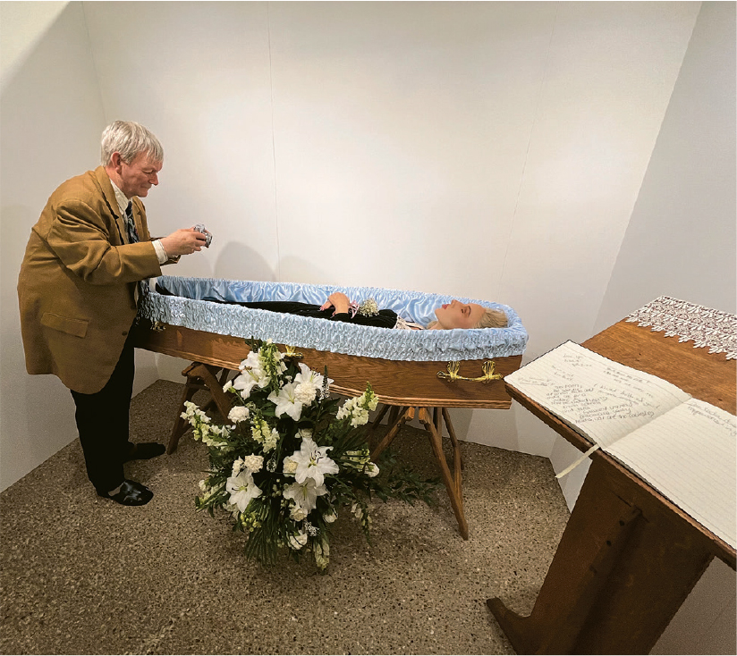 最近因為書店IDEA推出了一本由藝術家Nadia Lee Cohen與攝影師Martin Parr合作的攝影書Julie Bullard,特地在DSM設置了一個藝術裝置。這個裝置是一個設置在店內的微型畫廊,裏面只有一件作品,就是一組Martin Parr為躺在棺木裏的Nadia Lee Cohen拍攝的雕塑。整個裝置充滿諷刺意味,正如Martin Parr的作品一樣。