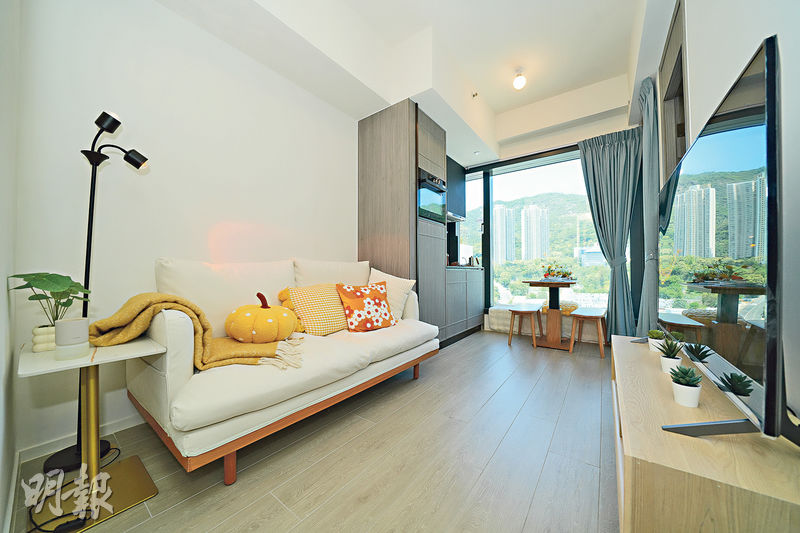 至於今次介紹的連家具現樓示範單位,位於26樓H室,實用面積261方呎,外連22方呎露台,屬一房間隔,開放式廚房家電齊備,電磁爐、洗衣機等家電選用法國品牌De Dietrich;單位可眺望翠綠山景,室內採光度亦理想。
