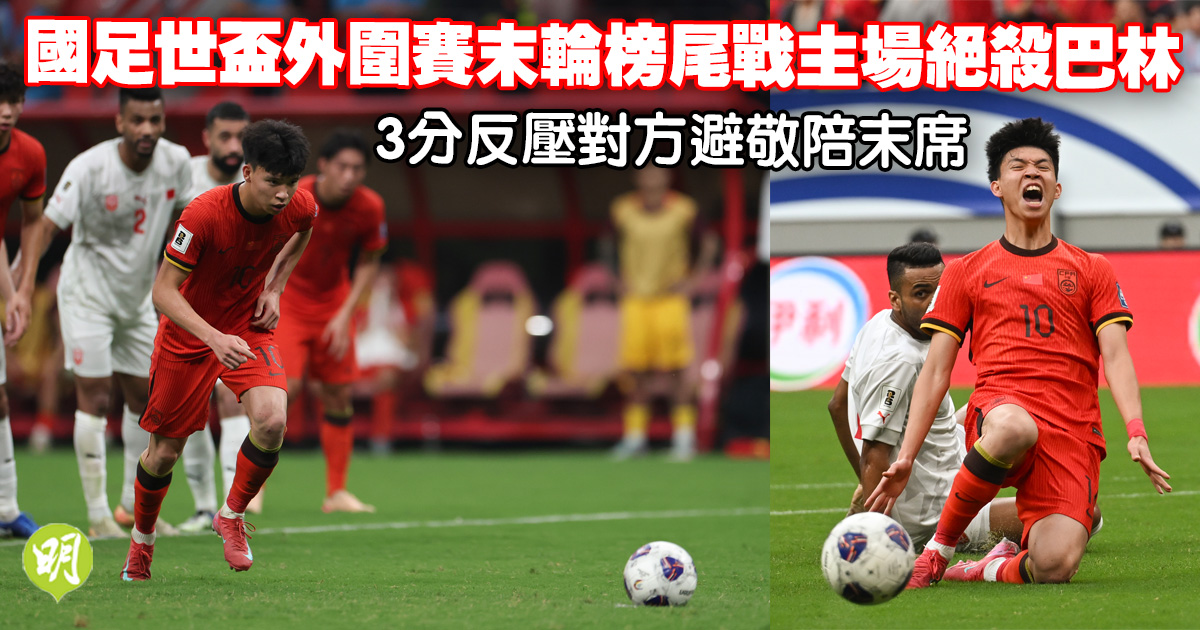 世盃外|國足末輪榜尾戰主場絕殺巴林 3分反壓對方避敬陪末席 (21:35)