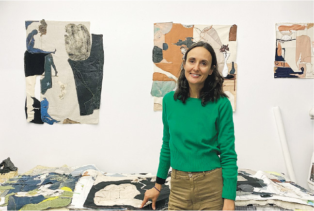 【明報專訊】Fanny Allié是一名來自法國蒙彼利埃、在紐約生活近20年的混合媒介藝術家。她以二手布料為主要材料,使用縫紉機進行拼貼創作。與傳統強調幾何設計與工整線條的拼布藝術不同,她的裁剪和走線自由靈活,保留布料的毛邊和粗糙質感。她創作出各種姿態和質感的人物,通過層疊的構圖和纖細的縫紉線,讓人物之間產生連接和張力。