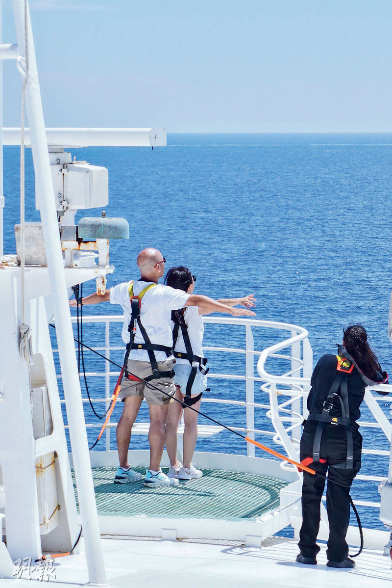 郵輪上娛樂豐富,最特別的是「鐵達尼號船頭體驗」(每位88港元),穿上安全衣與另一半擺出電影《鐵達尼號》Jack與Rose的經典姿勢,迎着海風,腦海自動迴響Celine Dion的My Heart Will Go On。除了船頭,12樓船尾亦是不錯打卡點,人流較少,風勢較弱,可直面大海拍下美照。喜歡刺激活動的話,14樓的探險樂園可免費體驗空中滑索、走板和攀岩,其中空中滑索的距離雖然不長,但面向大海快速滑下,有一定刺激感。不能錯過每晚位於7樓星座劇院的免費表演,中國風魔術節目《宏》、融入喜劇元素的《丹尼克——喜劇魔術世界》均適合一家大小,推薦結合雜技與舞蹈的《炫彩人生》,表演人員輪流上演各種高難度動作,如軟骨功、蒙眼射箭、高空拋接等,氣氛熱烈,記者觀賞時全場爆滿,建議提早入場。