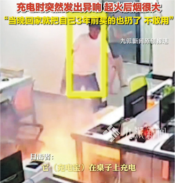 「九派新聞」報道,目擊者昨發布辦公室閉路電視畫面稱,發生爆炸的羅馬仕充電寶是同事去年買的,不在日前羅馬仕召回型號之列,「充電時突然有響聲」,隨後冒出煙霧,短時間內爆炸並迅速燃起大火。他表示,之前沒想到事情會發生在自己身邊,事後馬上把其他羅馬仕充電寶也扔了,「不敢用了」。