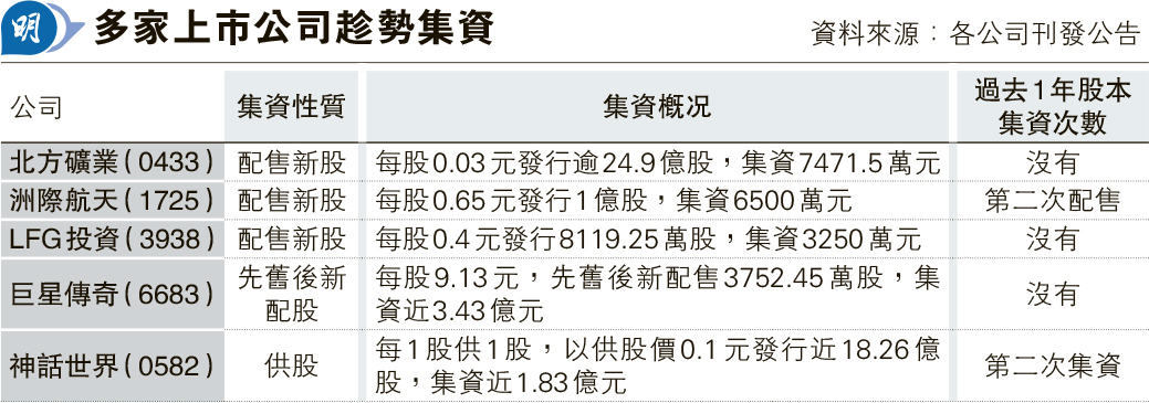 多家公司趁市旺集資 巨星傳奇折讓兩成配股