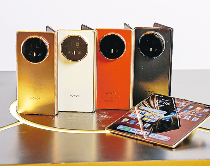 【明報專訊】HONOR再度突破摺疊手機的輕薄紀錄。新推出的旗艦手機Magic V5,最薄版本(1TB/白色)僅厚8.8mm,重量亦輕至217g,成為全球最薄的AI摺疊手機。