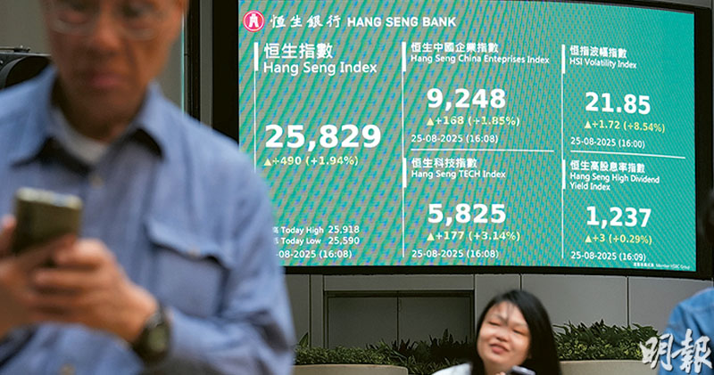 憧憬美減息 港股創近4年高 升490點逼近26000 北水轉淨走14億