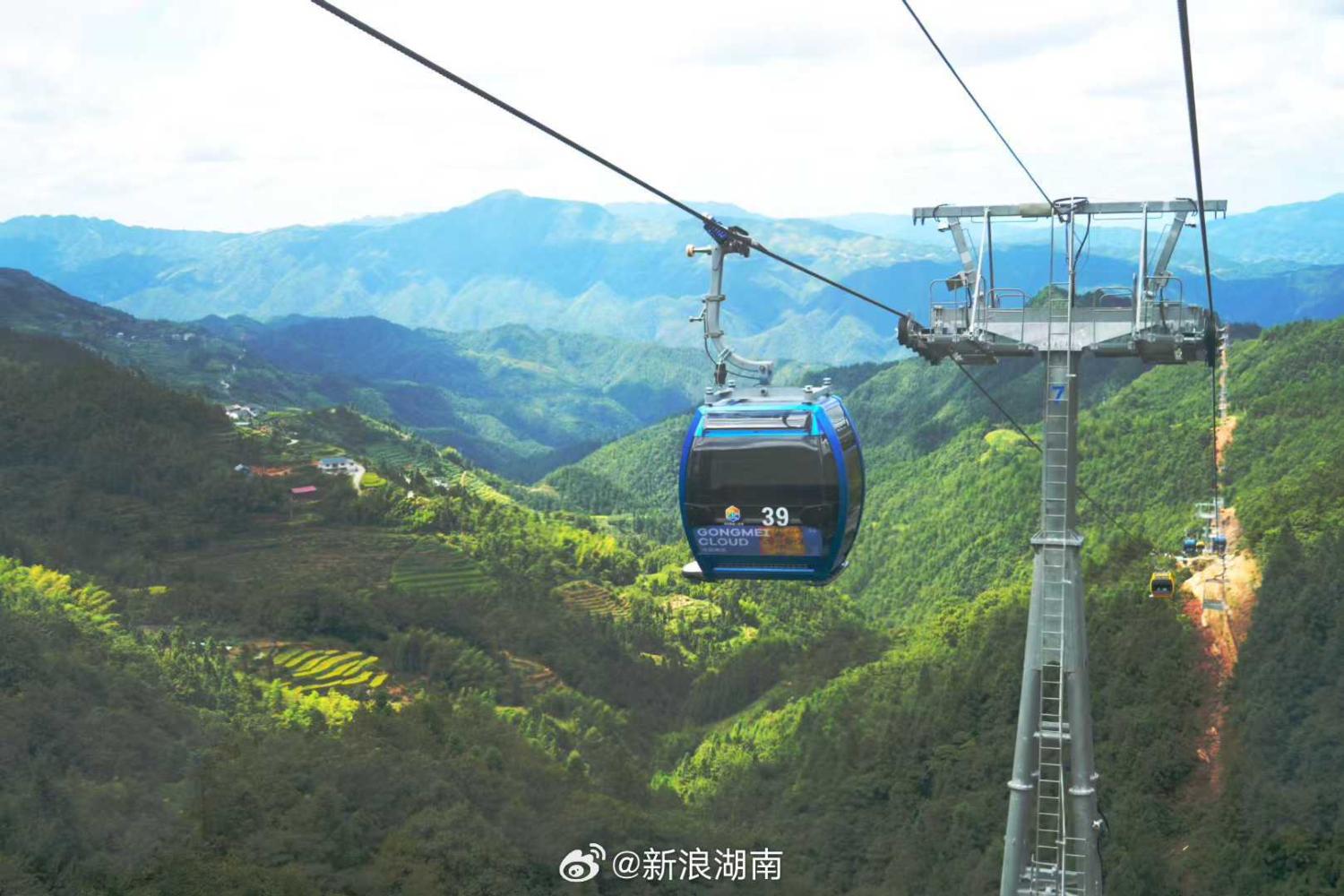 該索道從海拔280米的高鐵站外出發,23分鐘後可抵達海拔1450米的大花瑤景區,可盡攬峽谷、梯田、雲海、森林、山脈美景。