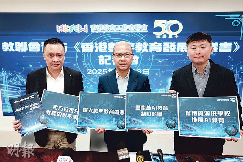 教聯會認為,儘管政府已成立數字教育策略督導委員會,目前學界推動數字教育的校際差異大,調查亦反映教師使用AI仍面對困難,建議政府應盡快成立專責小組,為AI教育制定長遠發展藍圖。該會認為藍圖應界定數字教育的目標、實施路線圖和指標等,並涵蓋各階段的AI學習框架,確保政策考慮不同學生需要。