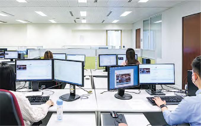 「智識聽」應用AI技術,聽到發言後會謄錄文字,但始終唔會百分百準確,大家見到文字出街,背後都係要人手即時修正,所以答問大會期間,有賴秘書處職員喺幕後同時間競賽,即時把關修改字眼,梁君彥形容透過「人機結合」先確保精準紀錄特首同議員嘅一言一句。